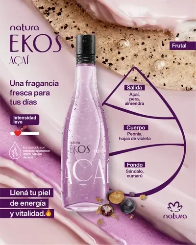 • notas de salida: guayaba, manzana, açaí, pera, ananá, limón, damasco, frambuesa
